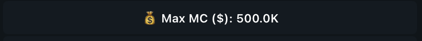Selecting this button and responding to the bot will **change the Max Market-Cap** amount you are using to Snipe with. After **providing** your chosen amount, the settings page will **update and reflect your new chosen Market-Cap value.**&#x20;