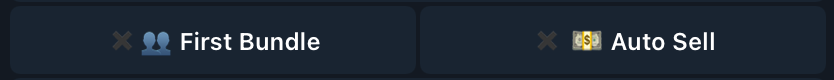Want to guarantee your transaction being in that golden first bundle when sniping? Select the button on the left! Sniping with First Bundle toggled will only push your transaction to the chain if you will place within the first bundle of snipe transactions. Determining this is up to the user and can be affected by the number of wallets across the board sniping the launch as well as the amount of tip used for the snipe!&#x20;