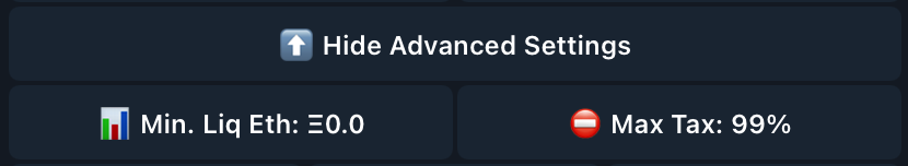Advanced Settings are additional safety precautions that will help keep you safe when sniping. These two settings are completely optional and act similarly to Max-MarketCap!&#x20;